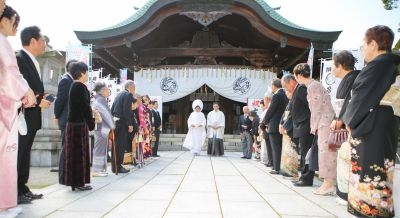 神社にて挙式後ジ・エクセレントガーデンにて披露宴♪