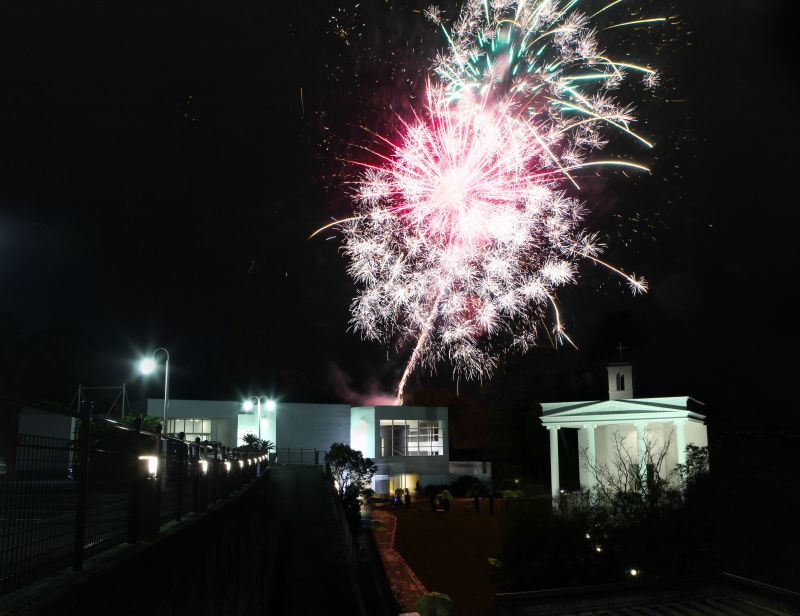 本物の打ち上げ花火にゲストの皆様も大喜びの演出です♪